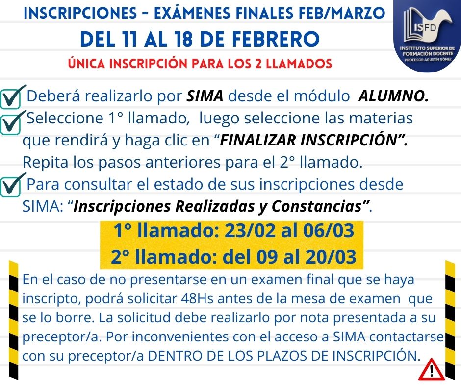 Se encuentra abierta la pre-inscripción de ingresantes 2026 para carreras docentes, técnicas y capacitaciones hasta el 31/12 a través de SIMA EDUCATIVA. INFORMACIÓN IMPORTANTE: CONFIRMACIÓN DE INSCRIPCIÓN: